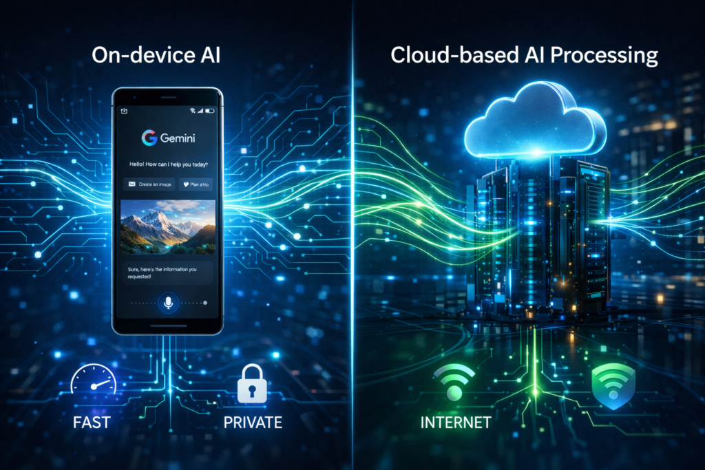 One of the most important aspects of how Google Gemini works on Pixel devices is the balance between on-device AI and cloud AI. Instead of relying on a single system, Pixel phones intelligently switch between the two depending on the task.