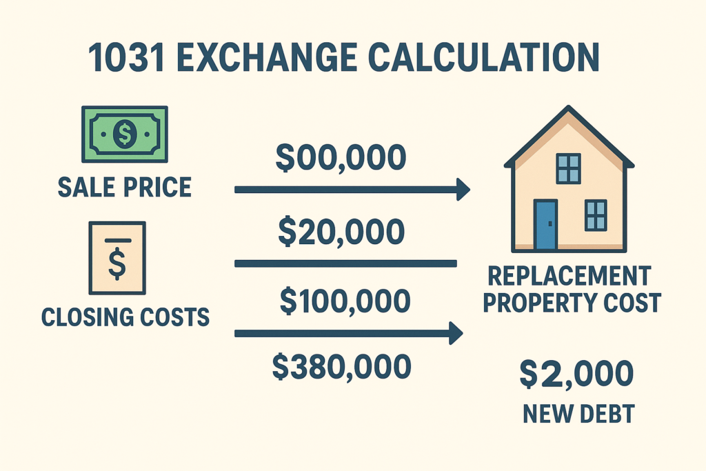 For instance, if you paid off a $100,000 mortgage on your sold property, the replacement property must carry at least $100,000 in debt. If the new property’s debt is lower, you’ll need to add cash to make up the difference. This ensures that the equity and debt balance is maintained, keeping your exchange fully tax-deferred.