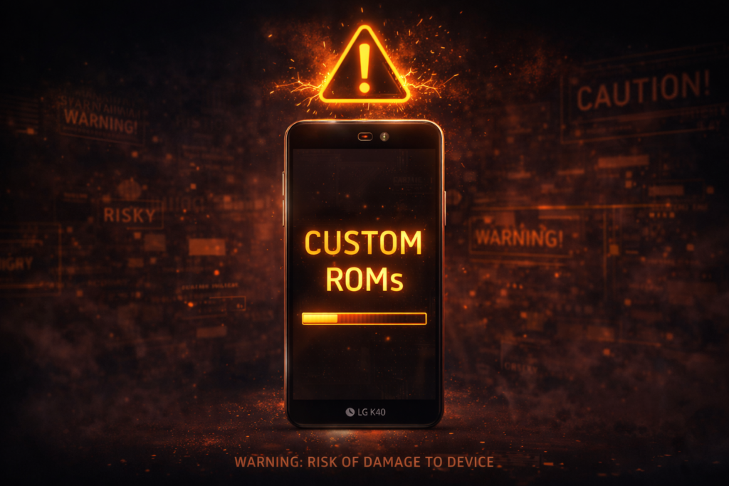 Some online guides suggest installing custom ROMs to upgrade the LG K40 to newer Android versions. While this may sound tempting, it comes with serious risks.