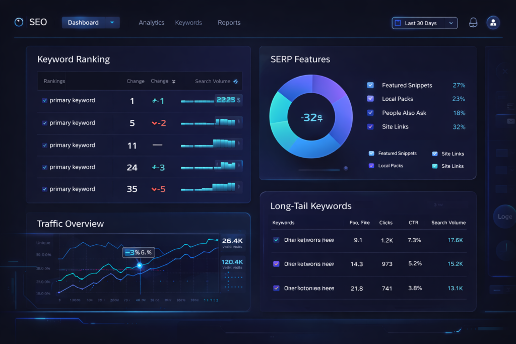 Monitor rankings, traffic, and engagement using tools like SE Ranking, SEMrush, or Ahrefs. Track performance at the cluster level, analyze SERP features, and refine your strategy based on data-driven insights over time.