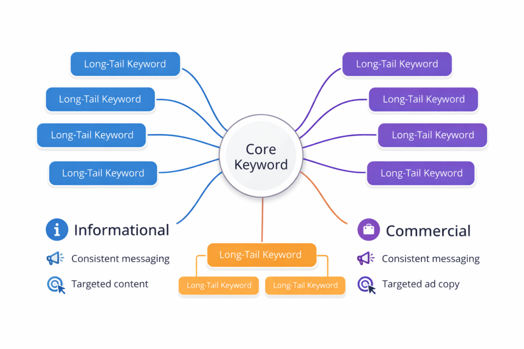 Keyword clustering is the process of grouping related long-tail keywords based on shared search intent and topic relevance. Instead of creating multiple thin pages, you build one strong piece of content that satisfies several closely related searches.