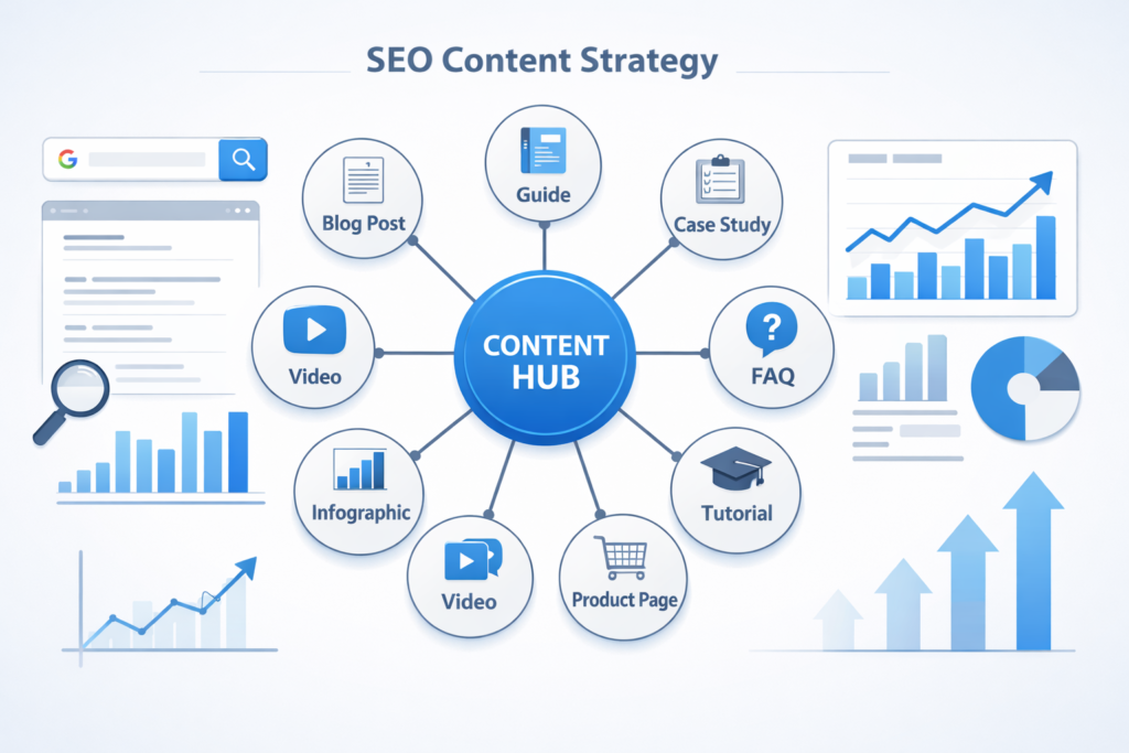 An SEO content strategy is a structured approach to planning, creating, optimizing, and maintaining blog content so it aligns with search intent, builds topical authority, and drives measurable business results like traffic, leads, and revenue.